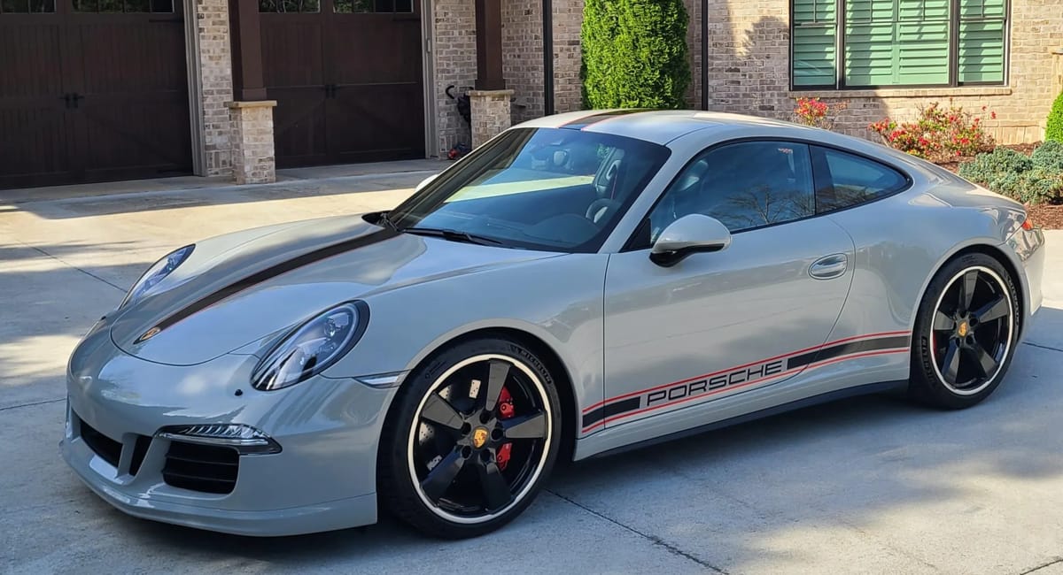 This 2016 911 Carrera GTS Rennsport Reunion Edition came finished in said Fashion Grey over Black leather and Alcantara and showed 2,900 miles. A very clean example, it has seen light use with an oil change in 2023 at 2,200 miles and a replacement battery under current ownership. Fully PPF’d and well documented, the gallery included a DME report along with the original window sticker and service records.